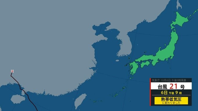 【台風情報】「台風22号」9日(木)には「非常に強い勢力」に 関東甲信地方は注意を 今後の進路は?【7日午前10時半更新 気象庁 10月7日~10月23日までの16日間天気シミュレーション】 RSK山陽放送 2025年10月7日(火) 10:30 国内 天気 台風21号(マットゥモ)はどうなった? 台風21号は、きのう(6日)午後9時に熱帯低気圧になったということです。【画像②】。 【画像②】