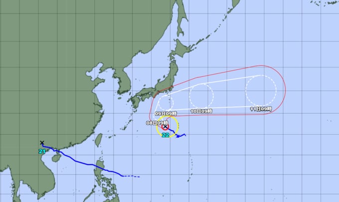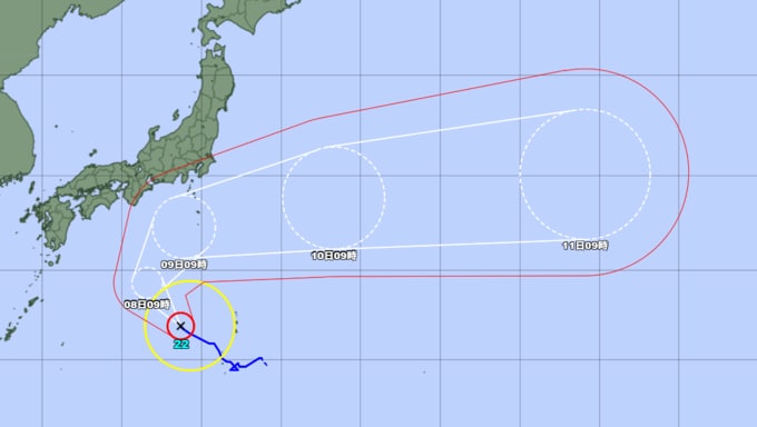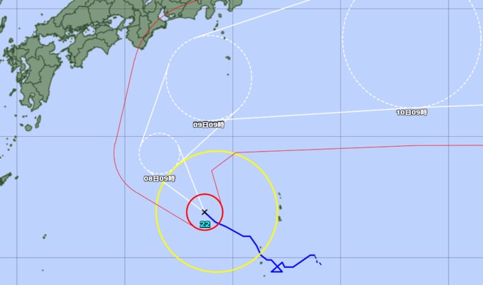 進行方向、速さ 北北東 15 km/h (9 kt)