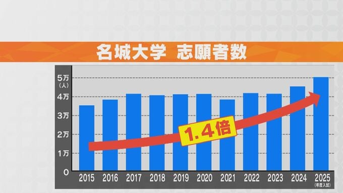 この経営戦略は少子化の中、学生を集めるのにも効果があるようで、10年前と比べて志願者は1.4倍に増えています。