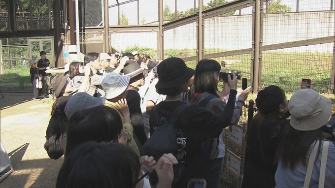 母親「シルク」のあとをついて元気いっぱいに動き回ると、来園者がその可愛らしい姿を写真に収めました。