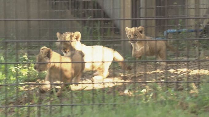 きょう一般公開が始まったのは、のんほいパークで8月17日に生まれた3頭のライオンの赤ちゃんです。赤ちゃんはオス2頭、メスが1頭で、生まれて2か月近くが経ち「放飼場」に出て行けるようになりました。