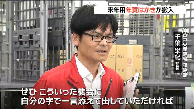 来年用の年賀はがきが10月7日、仙台市内の郵便局に搬入されました。