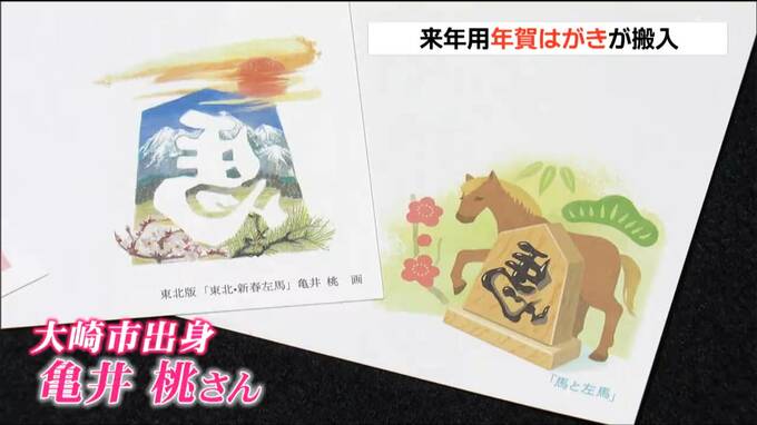 来年用の年賀はがきは全部で6種類あり、このうち絵入りの東北版は大崎市出身のイラストレーター亀井桃さんが絵を担当しました。