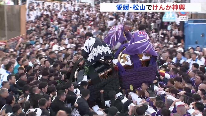 愛媛県松山市では、けんかみこしで知られる秋祭りの鉢合わせが繰り広げられました。激しいみこしのぶつけ合いに祭りムードは最高潮に達していました。