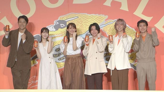 キリンビールの新ブランド発表会が行われ、CMに出演する綾瀬はるかさん、Mrs. GREEN APPLE、浜辺美波さん、鈴木亮平さんの豪華6名が登壇しました。