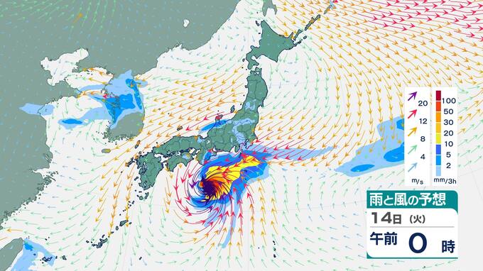 【台風情報】台風23号発生 3連休前後に日本列島沿岸部を西から東へ進む予測 12日には四国沖か 今後の進路はどうなる? 気象予報士が詳しく解説【気象庁 9日午後4時5分発表】 RSK山陽放送 2025年10月9日(木) 16:23 国内 14日(火)雨と風のシミレーション 14日(火)の3時間ごとの雨と風のシュミレーションは【画像㊻~㊽】の通りです。 【画像㊹】 【画像㊺】 【画像㊻】