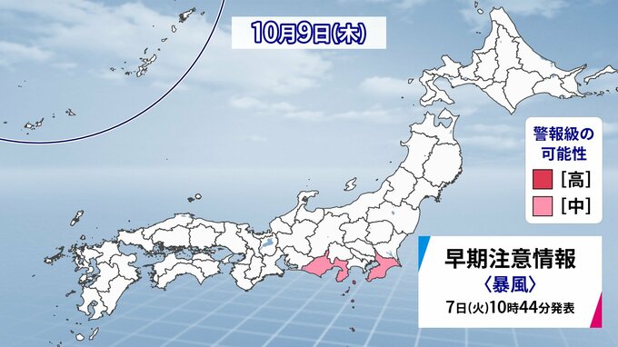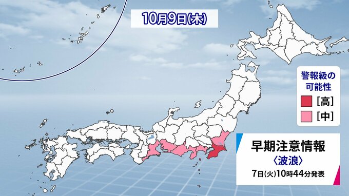 また、太平洋沿岸は広い範囲で高波にも警戒が必要になるほか、静岡県や神奈川県、千葉県では高潮のおそれがあります。