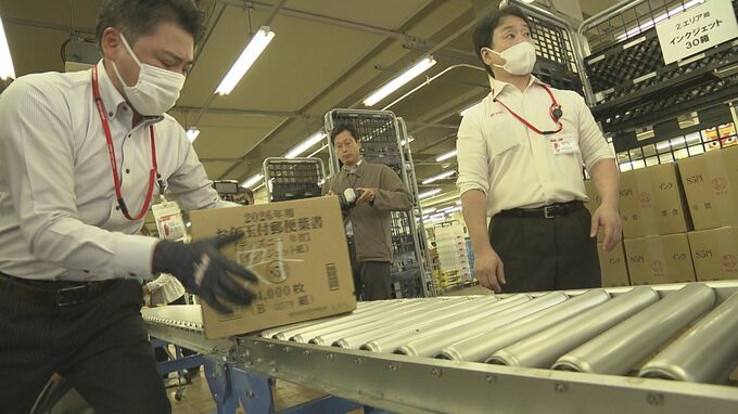 福島市の郵便局に、来年用の年賀はがきが運び込まれ、職員が仕分けを行いました。