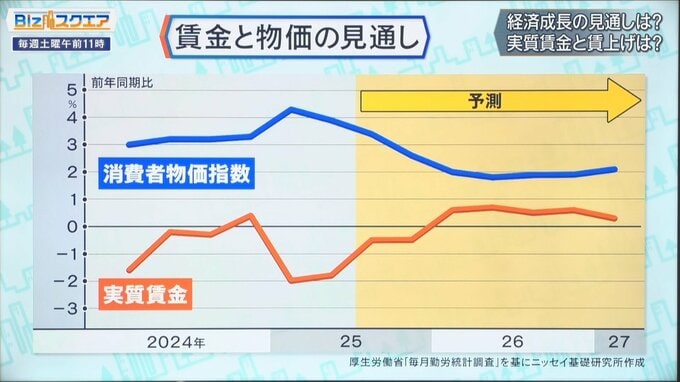 消費者物価指数はここのところずっと前年同月比3%超だったが、ニッセイ基礎研究所の見通しでは、「2026年度1.6%」を予想している。