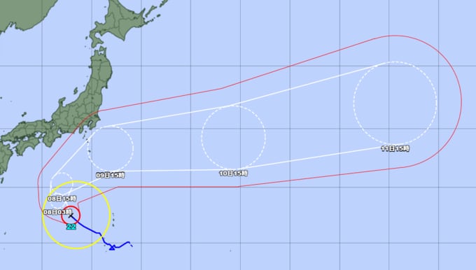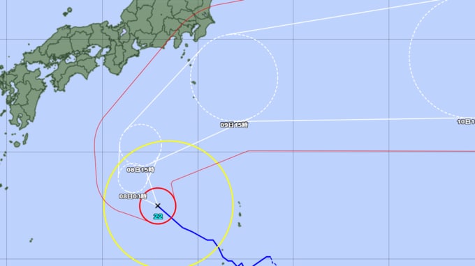 進行方向、速さ 東北東 65 km/h (34 kt)