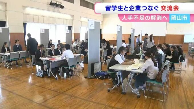 人手不足の解消に向けた取り組みです。外国人材の採用を考えている企業と海外からの留学生をつなぐ交流会が岡山市北区で開かれました。
