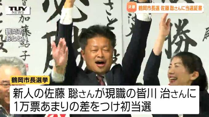 おととい行われた鶴岡市長選挙は新人の佐藤聡さんが現職の皆川治さんに1万票あまりの差をつけ初当選しました。
