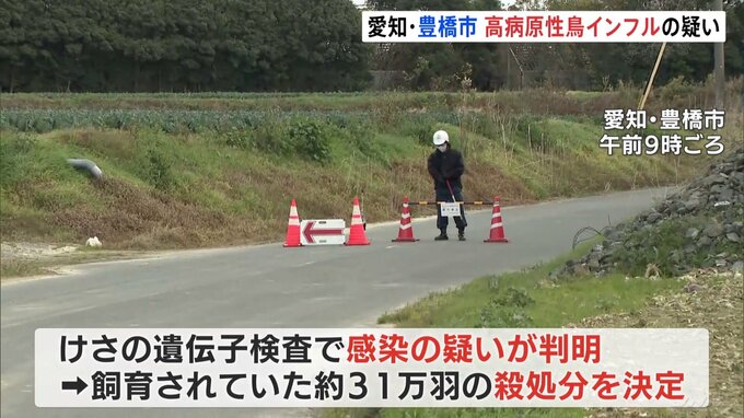 愛知県豊橋市の養鶏場のニワトリが高病原性鳥インフルエンザに感染した疑いのあることがわかりました。愛知県 大村秀章知事「ただちに殺処分の防疫措置をとる必要がある」愛知県によりますと、きのう、豊橋市内の…