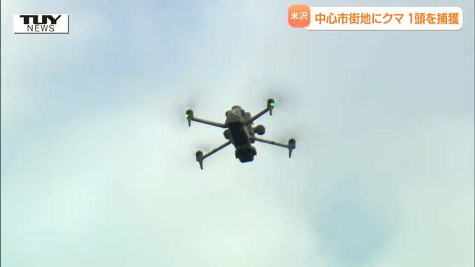 午前6時ごろの米沢市丸の内です。市と警察、猟友会がドローンを飛ばすなどしてクマの行方を探しています。