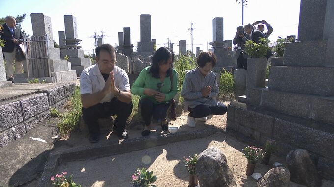 アナさんは宮本さんが管理している木村家の墓に手を合わせ、先祖に感謝の思いを伝えました。