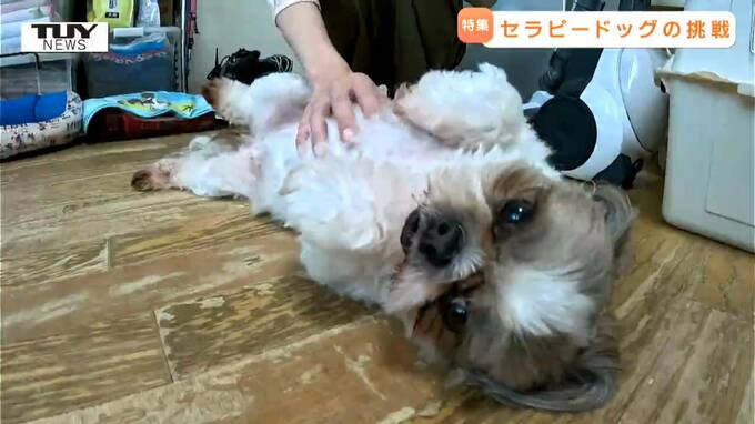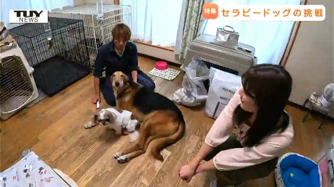 温厚で人間のことが大好きな子に成長するようにと西川さんの愛情を受けて育ったセラピードッグたち。家ではリラックスしているようですが、お世話は想像以上に重労働です。
