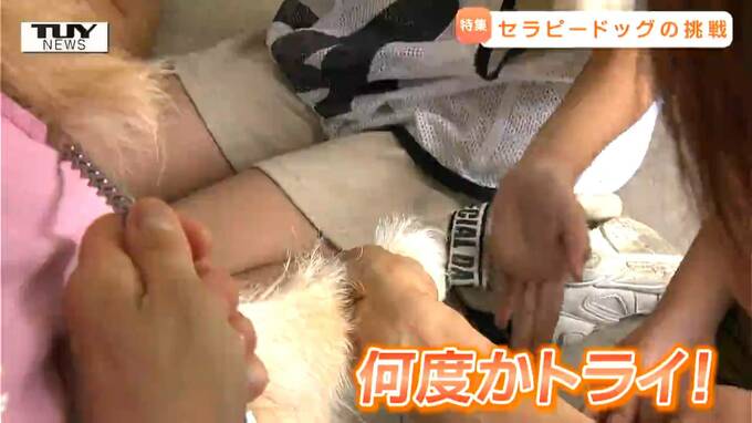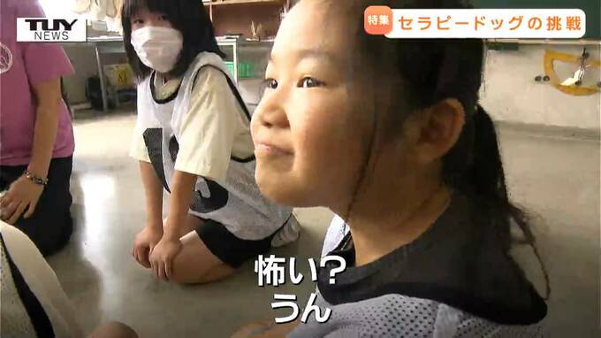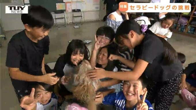 大内希美アナウンサー「犬が怖いと言っていた子がいまレイちゃんに触れています!」