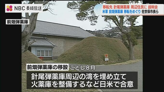 アメリカ海軍・前畑弾薬庫の移転先の施設配置案について日米が合意したことを受けて、長崎県佐世保市と防衛省は、6日、移設先である針尾弾薬庫周辺の住民に対し説明会を開きました。