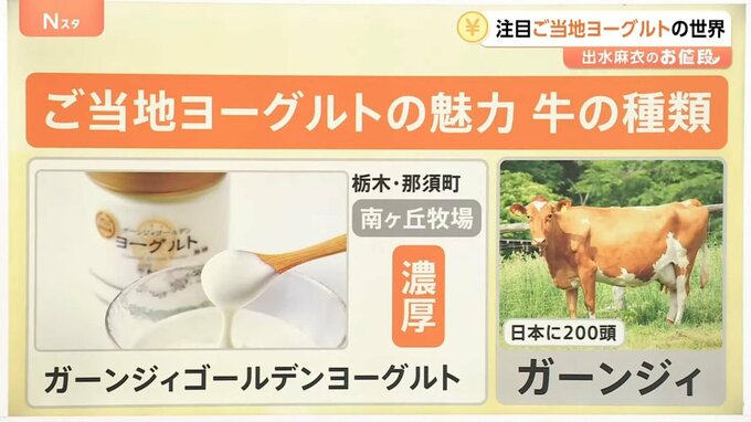 栃木・那須町の「南ヶ丘牧場」ではガーンジィ牛の乳で作られた『ガーンジィゴールデンヨーグルト』を販売しています。味は非常に濃厚だということです。