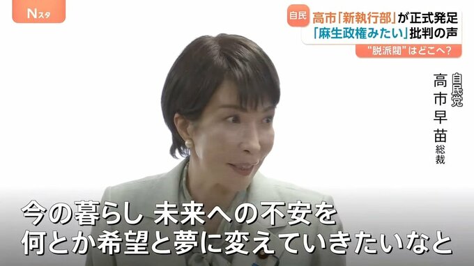 自民党の高市総裁は7日、新たな執行部を発足させました。派閥の意向が強く反映された人事に党内から疑問視する声が相次いでいます。