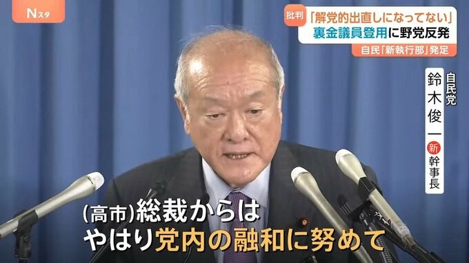 「党内融和」と「信頼回復」をうたった新執行部の船出が順調なものになるのか、高市氏の指導力が問われています。