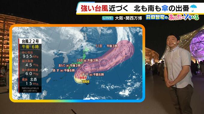 10月8日(水)の近畿地方は、北も南も傘の出番。湿気が増え、ムシムシとした暑さとなりそうです。 近畿地方は北からも東からも湿った空気が流れ込んで、雨の降る所がありそうです。そして南海上にある台風周辺…