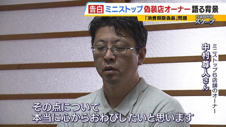 懺悔の言葉を口にする男性。コンビニチェーン「ミニストップ」で6店舗のオーナーを務める中村尊人さん(54)です。「消費期限偽装」について、店に来てくれた客に謝罪したいと、実名で取材に応じました。