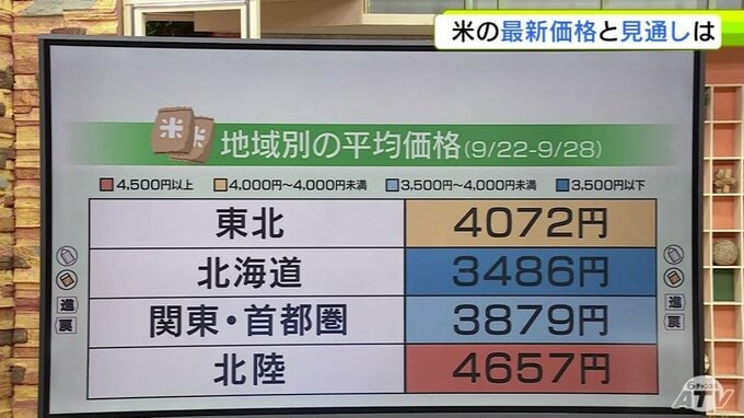 青森県を含む東北は4072円です。このほか、コメどころの北海道は3486円。そして関東と首都圏は3879円です。最も高いのは4657円の北陸となっていて、地域差も出ています。