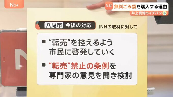 JNNの取材に対し、▼“転売”を控えるよう市民に啓発していく、▼“転売”禁止の条例を専門家の意見を聞き検討していくといいます。