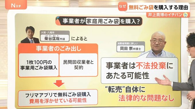 消費者問題に詳しい岡田崇弁護士によると、「その事業者は不法投棄にあたる可能性がある」といいます。事業者としては、会社のごみを家庭ごみとして偽って出すと、不法投棄、つまり法に触れる可能性があるということです。