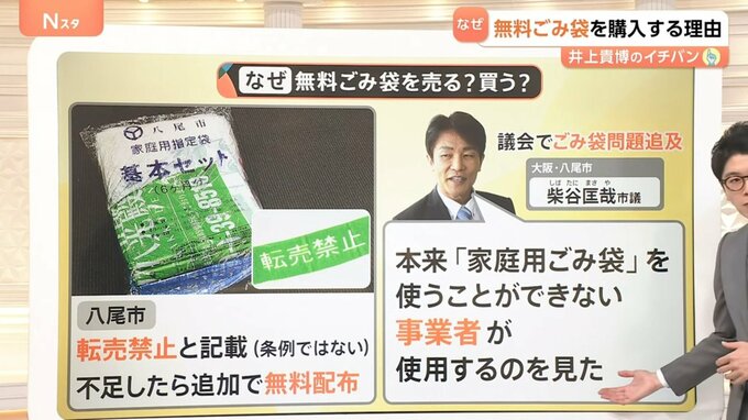 柴谷市議によると、事業者のごみ出しは、▼1人1枚100円の事業用のごみ袋を購入、もしくは▼民間の回収業者と契約をしなければなりません。