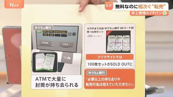 フリマサイトでは100枚セットが「SOLD OUT」に。ゆうちょ銀行は「必要以上の持ち去りや転売行為は控えていただきたい」としています。