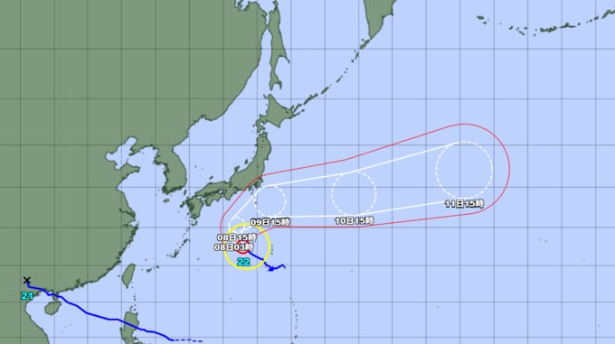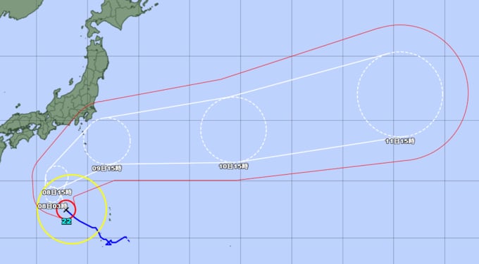 進行方向、速さ 東北東 65 km/h (34 kt)