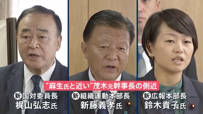 麻生氏は“挙党一致”を強調しますが、他にも、執行部に名を連ねた梶山国対委員長、新藤組織運動本部長、鈴木貴子広報本部長は、麻生氏とも近い茂木元幹事長の側近です。
