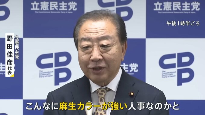 「こんなに麻生カラーが強い人事なのかと。高市カラーが全然ない。麻生カラーに茂木カラーがちりばめられた古い自民党の復活としか思いようがない」