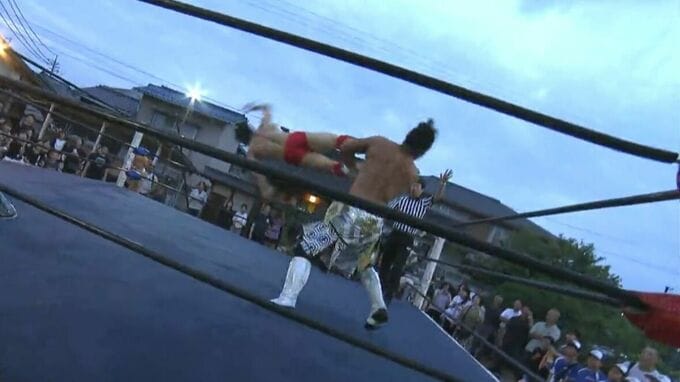会場となったのは、なんと寺。現役レスラーの迫力ある戦いに境内は大声援に包まれました。