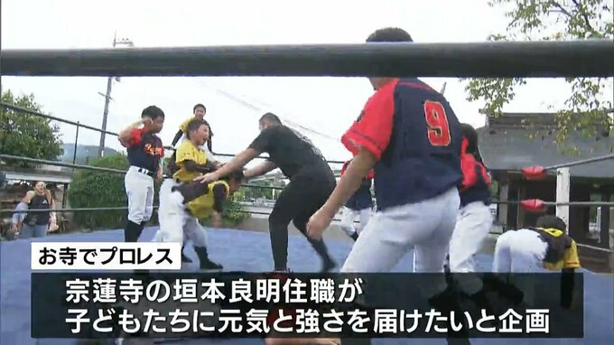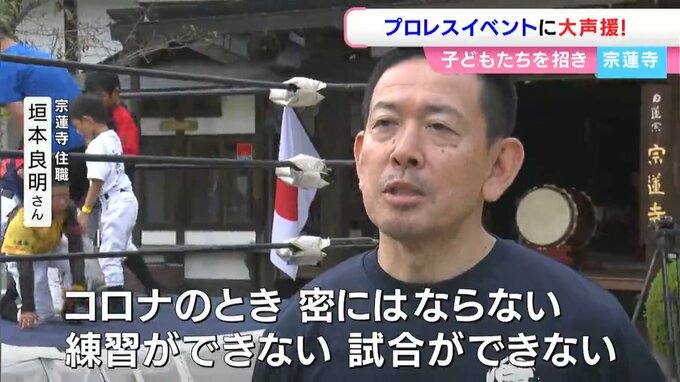 宗蓮寺では、ソフトボールやバスケットボールなど、4つのこども会チームが活動していて、プロレスファンでもある垣本良明住職が、こどもたちに元気と強さを届けたいと企画しました。