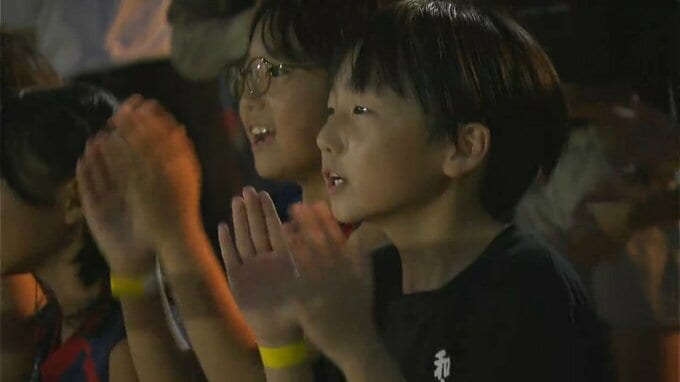 子どもたちは真剣な眼差しで応援します。岡山市北区の宗蓮寺で開かれたプロレスリング・ノアのイベントです。