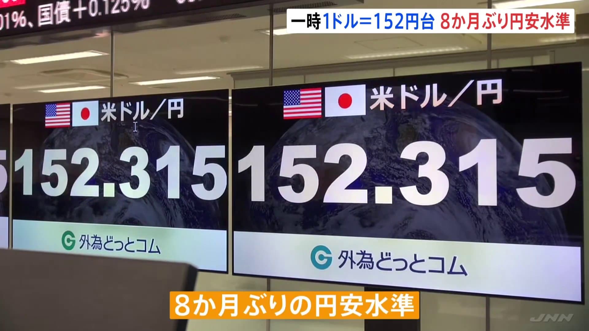 外国為替市場では、いわゆる「高市トレード」が続き円安が進行していて、円相場は1ドル=152円台になりました。外国為替市場では現在、円相場は1ドル=152円台前半で推移しています。およそ8か月ぶりの円安水準です…