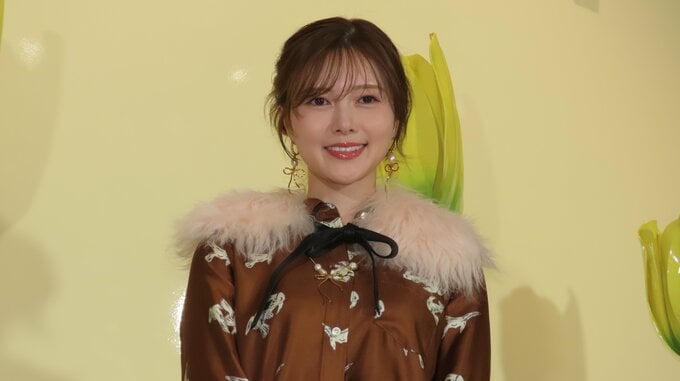 白石さんは茶色のパジャマルックで会場に登場。お気に入りのポイントについて白石さんは、‟パジャマルックのスタイルを着させていただいていて、リラックスさの中にベルトやアクセサリーを付けてエレガントさを入れました”と明かすと、‟首元のベビーピンクのファーも可愛くて、ピンクが可愛いと思える年齢になってきたので、普段の小物にもワンポイントでピンクを入れられたら”と明かしました。
