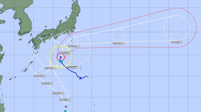 進行方向、速さ 西北西 35 km/h (20 kt)