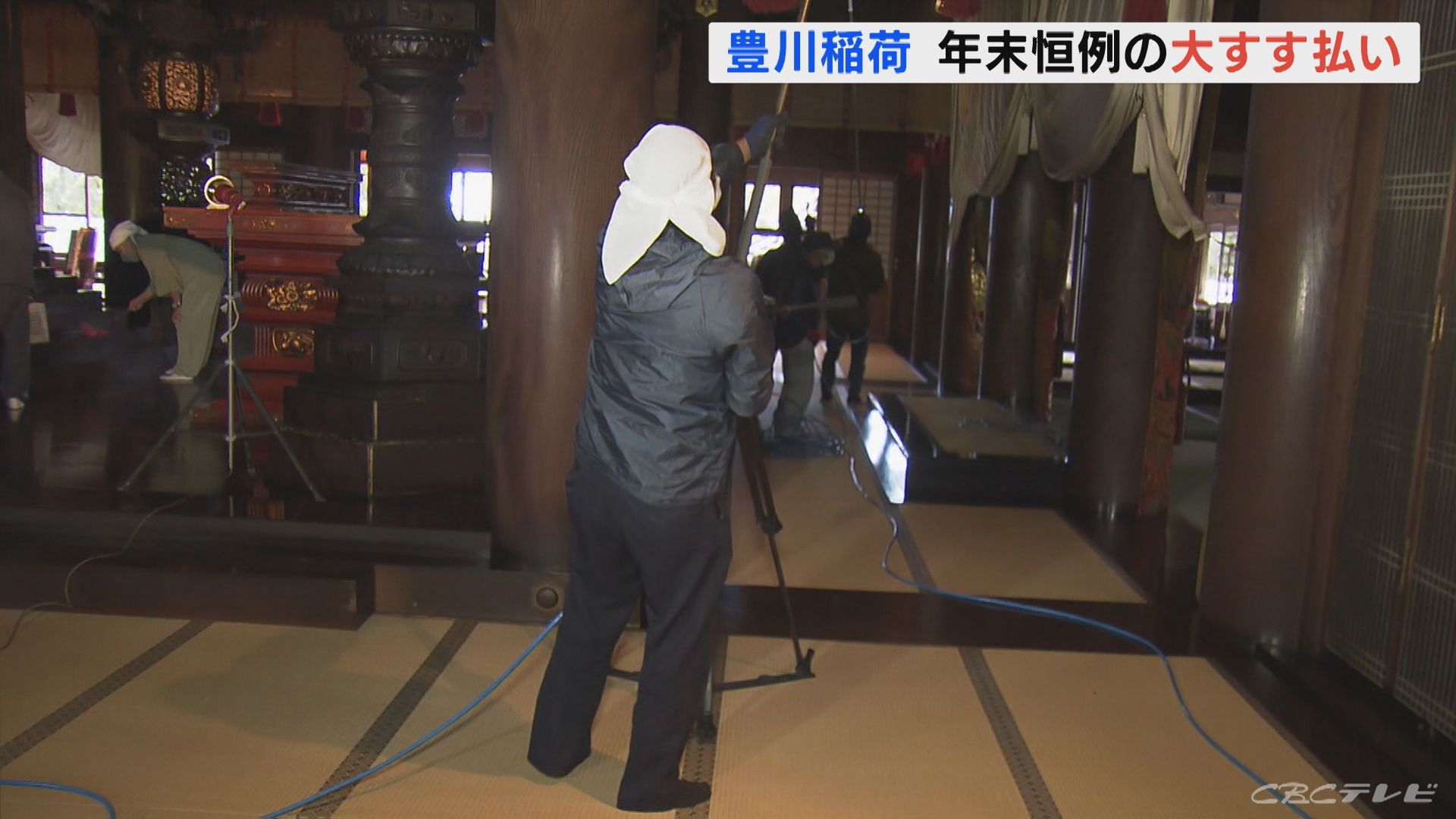 愛知県豊川市の豊川稲荷で、1年のほこりや汚れをきれいに落として新年を迎えるための「大すす払い」が行われました。