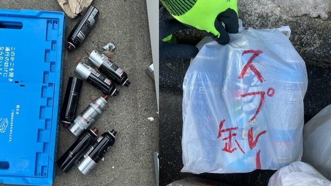 続けて、「中身を使い切らないで缶の中に入っていると作業員が危ないので、自治体の指示に従ってください。」と呼びかけました。