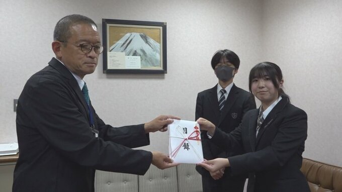 高校には感謝状が贈られ、寄付金は富士山周辺のごみ拾いボランティアの活動などに役立てられます。