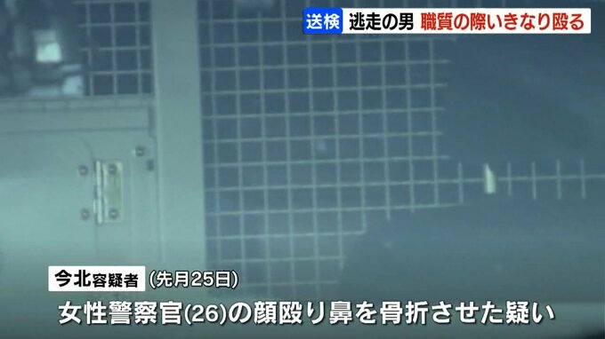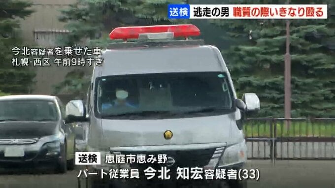 今北知宏容疑者は、9月25日、北海道恵庭市黄金中央1丁目の路上で、女性警察官の顔を殴って鼻の骨を折るなどした疑いで8日、送検されました。