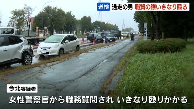 多重事故などに関与したとみられ、逃走中に女性警察官の顔を殴ってけがをさせた疑いで再逮捕された男は、職務質問された際にいきなり殴りかかっていたことがわかりました。