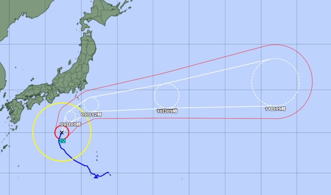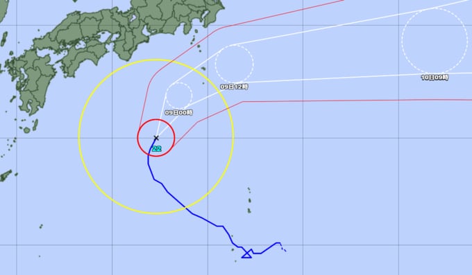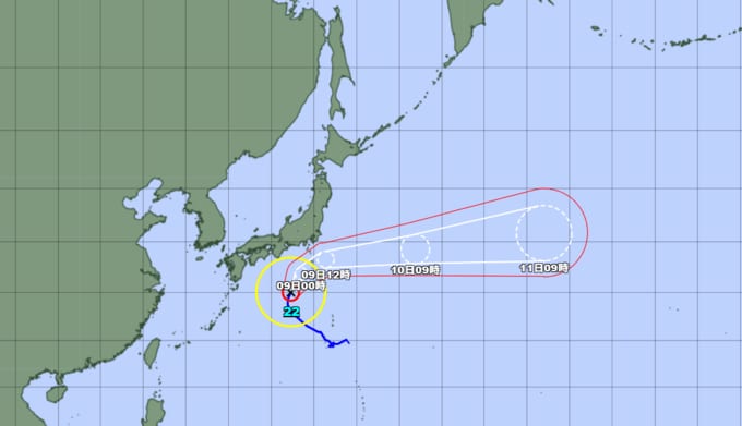 進行方向、速さ 北北東 20 km/h (11 kt)