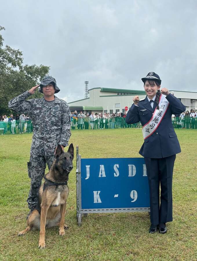 さらに志田さんは「地域の皆様と自衛隊の皆様との温かい交流の場だと実感し、心がほっこりしました」としていて、「K-9(ケイナイン)」と呼ばれる警備犬とも一緒にポーズを取っています。