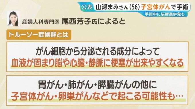 山瀬まみさんは手術を受けている最中に脳梗塞を併発しています。