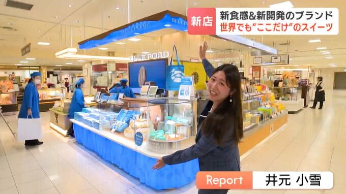 大丸札幌店の地下1階に8日オープンした、キャラメルミルクスイーツの専門店、「BLUE POND(ブルー・ポンド)」。